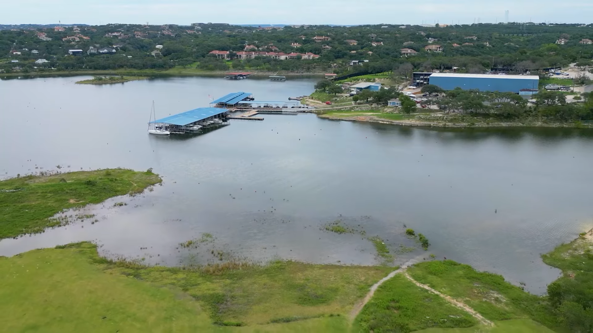 - Lake Travis to one side